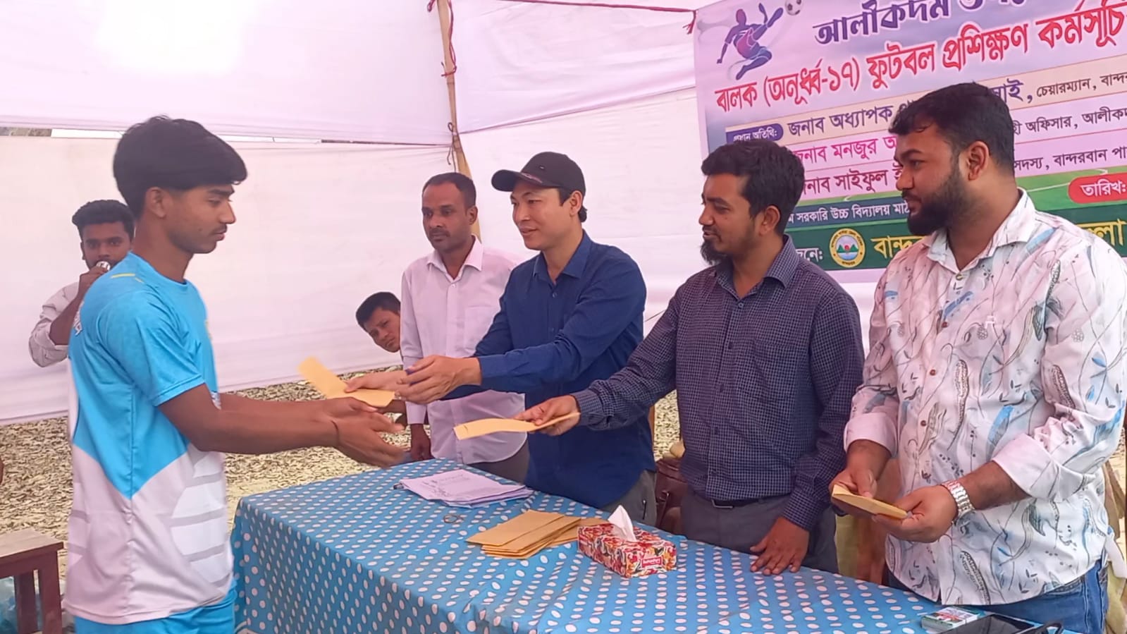 আলীকদম উপজেলার অনূর্ধ্ব-১৭ বালকদের নিয়ে আয়োজিত ১০ দিনব্যাপী ফুটবল প্রশিক্ষণ কর্মসূচীর সমাপনী অনুষ্ঠান অনুষ্ঠিত হয়েছে। আলীকদম সরকারি উচ্চ বিদ্যালয়ের মাঠে আয়োজিত এ অনুষ্ঠানে স্থানীয় ক্রীড়াপ্রেমী, অভিভাবক ও সুধীজনরা উপস্থিত ছিলেন।